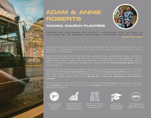 We are excited to partner with Adam & Annie as they are in the planning phase for planting a church in Tacoma. Watch the video to hear their story.